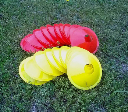 Stożki treningowe są doskonałą pomocą przy przeprowadzeniu każdego treningu, ćwiczeń ogólnorozwojowych i zabaw dla dzieci.