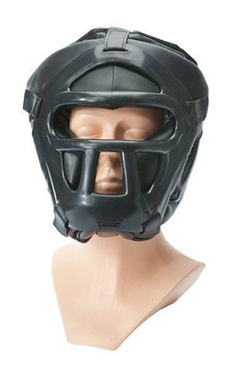 Solidny kask treningowy. Osłania nie tylko głowę, uszy i podbródek ale dzięki przedniej kratce chroni także twarz przed uderzeniem. Kratka jest zdejmowana i bardzo łatwa w ponownym montażu. System zapięcia na rzep pozwala na dobre dopasowanie kasku do głowy użytkownika.