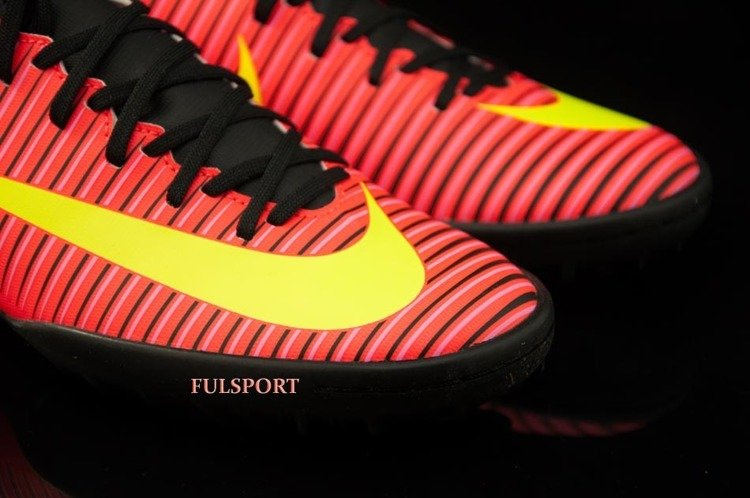 Męskie buty piłkarskie na sztuczną trawę/orlika Nike Mercurial Victory TF mają minimalistyczną, teksturowaną cholewkę i podeszwę ze specjalnymi wypustkami, dzięki czemu zapewniają niewiarygodną kontrolę nad piłką i przyczepność na nawierzchni typu turf. Model jest częścią doskonałej kolekcji "Nike Spark Brillance pack".